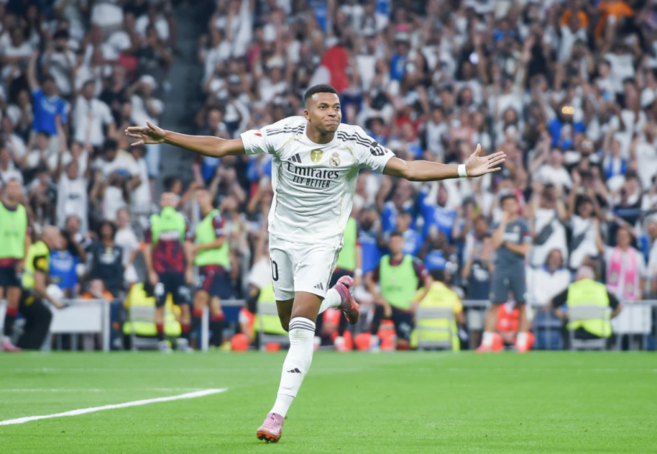 首轮与奥萨苏纳队的比赛,新赛季改穿10号的姆巴佩庆祝进球。图片来源:新华社